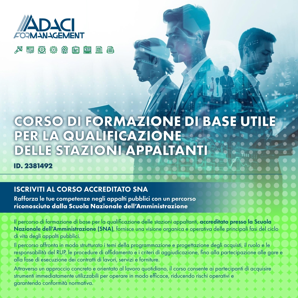 CORSO BASE UTILE PER LA QUALIFICAZIONE DELLE STAZIONI APPALTANTI