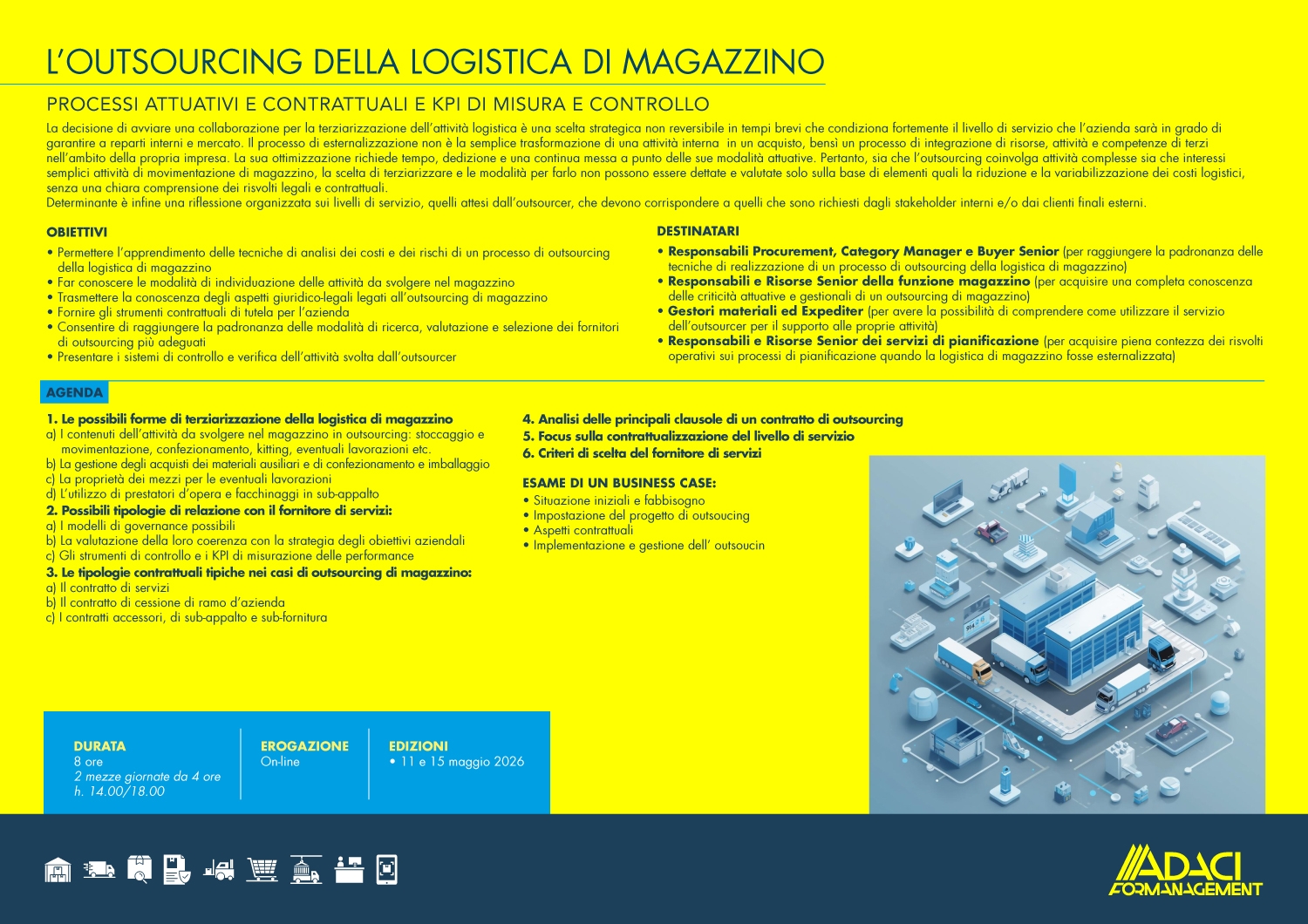 Per ogni informazione in merito Vi preghiamo di contattare la Segreteria Corsi (mail formanagement@adaci.it -  Tel. 02 400 724 74)